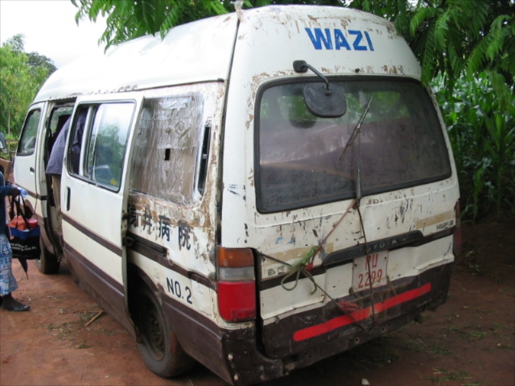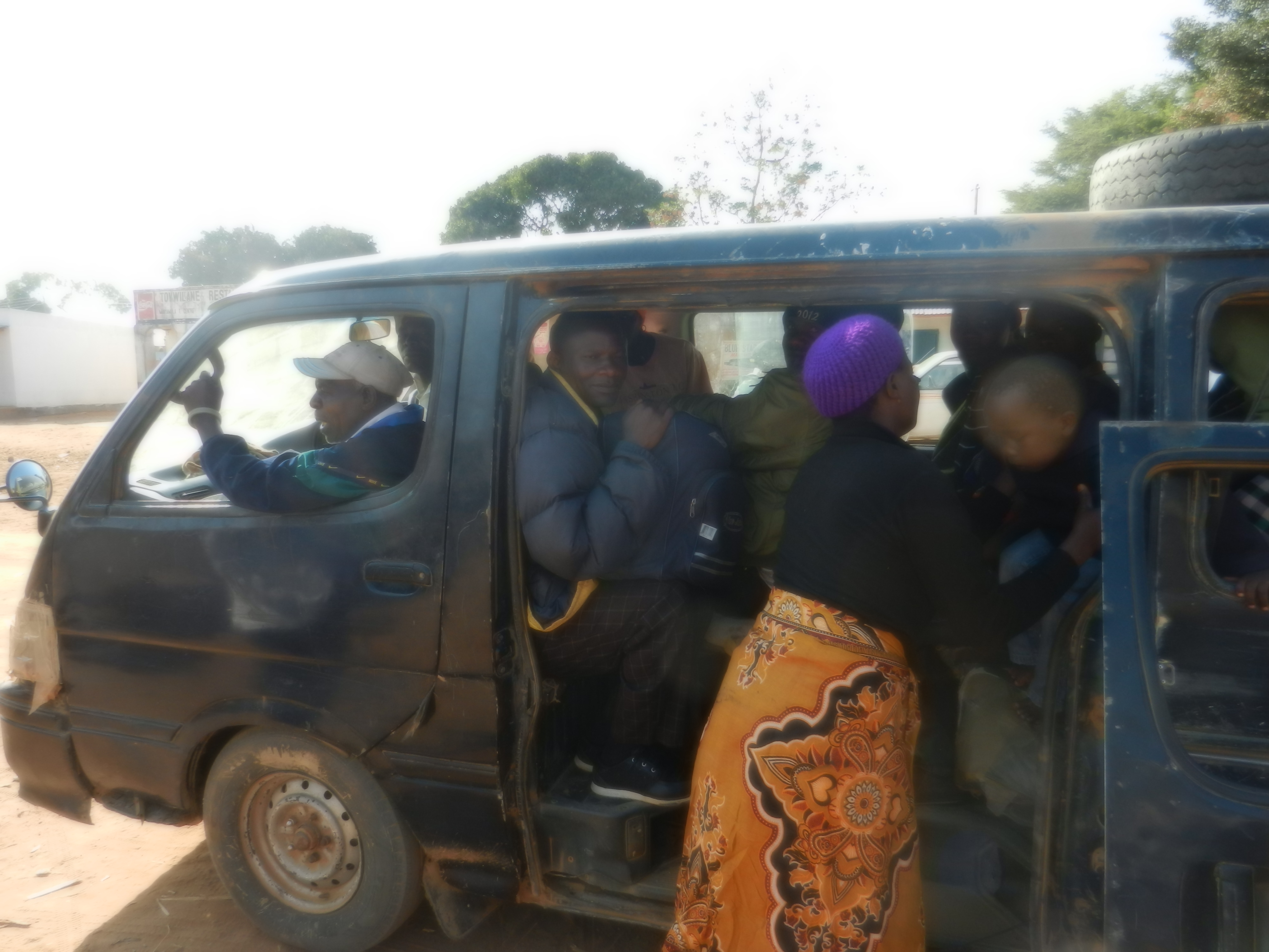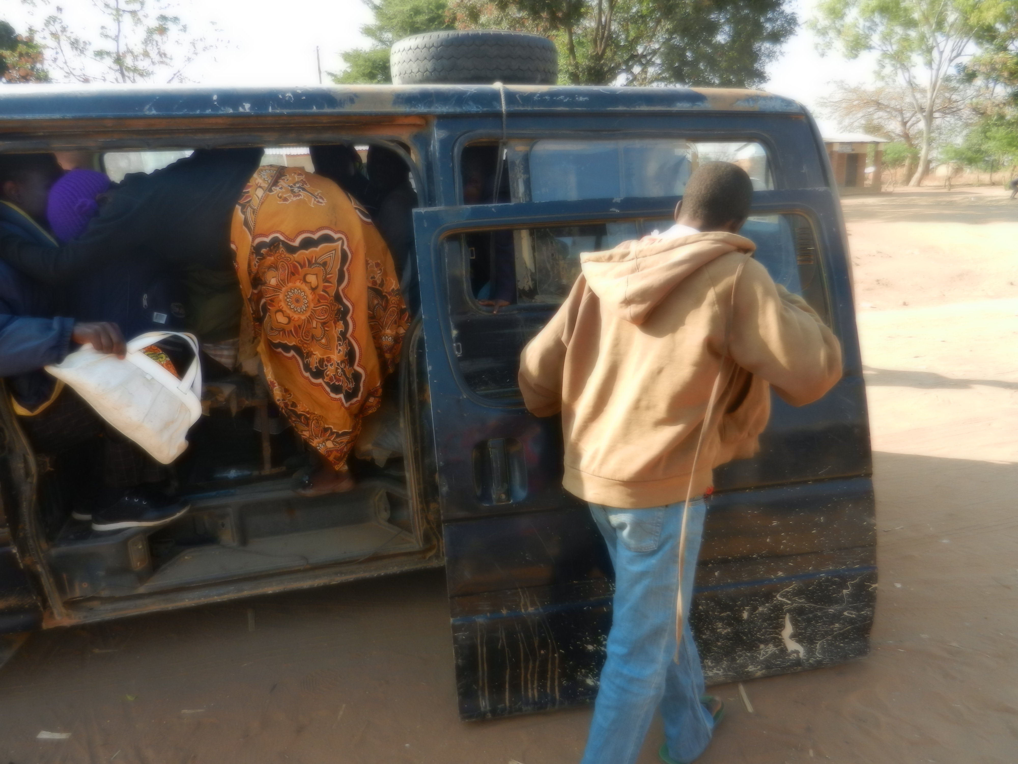 Then the space behind the back seat and wherever more space can be found is filled with bags of maize, firewood, charcoal or whatever the passengers need to take with them. A rope holds the back door closed. Sometimes the side door has come off it’s hinges and needs to be tied to the vehicle with a rope as well.